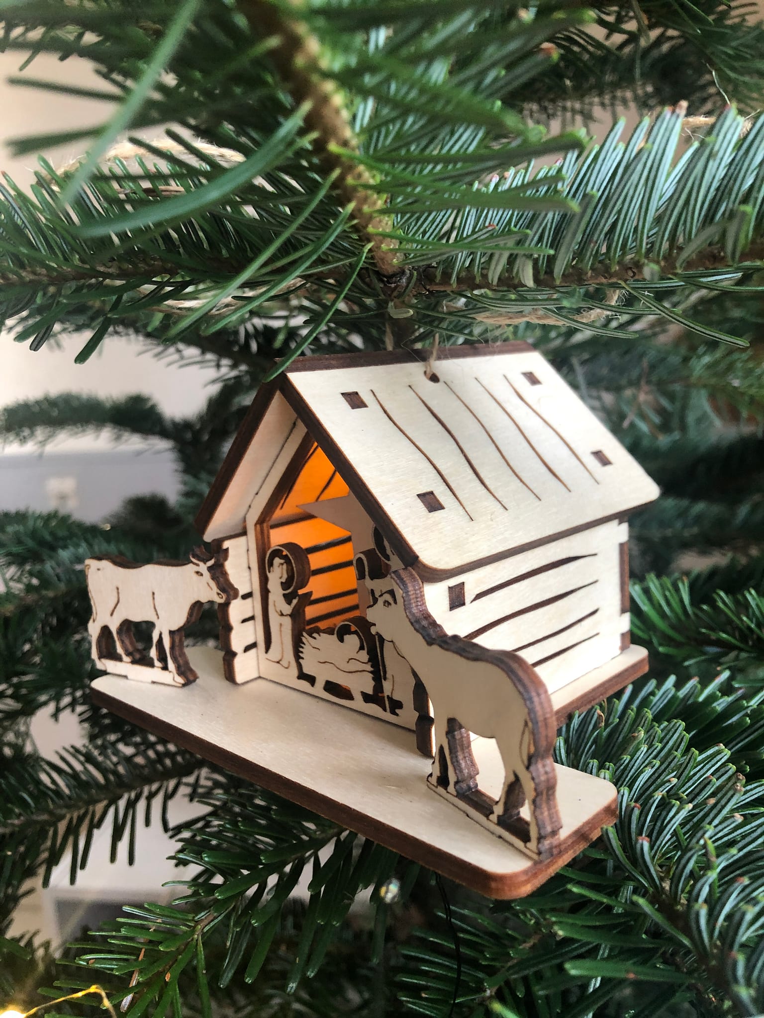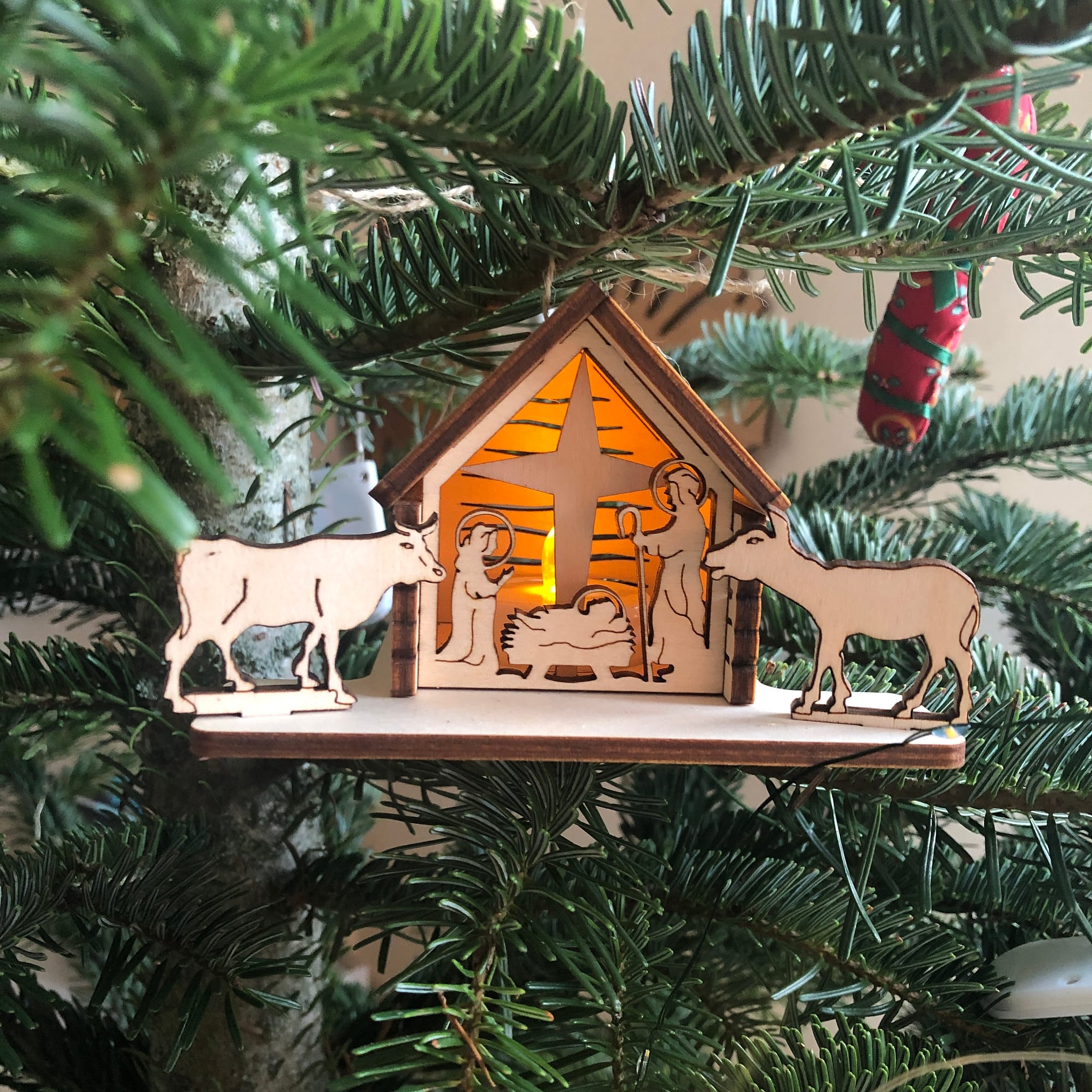Beleuchtete Krippe zur Dekoration des Weihnachtsbaums.