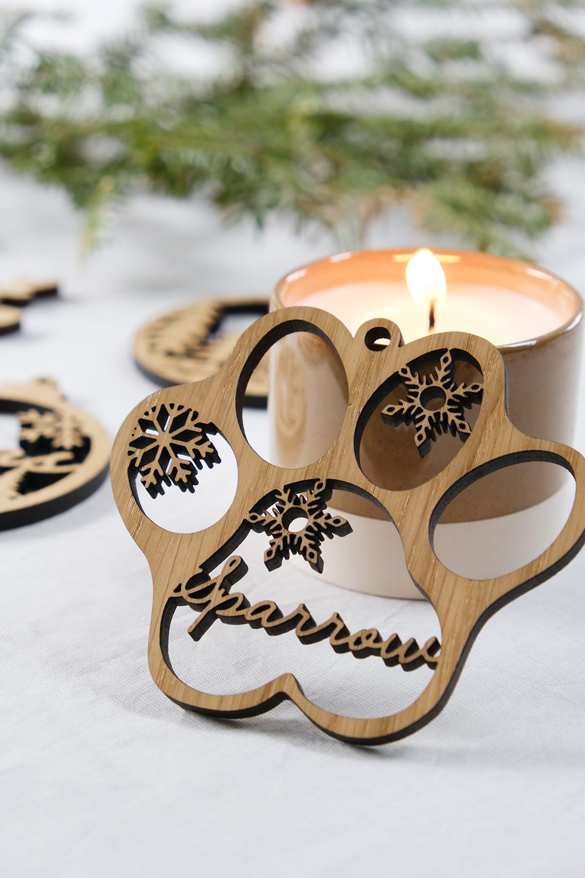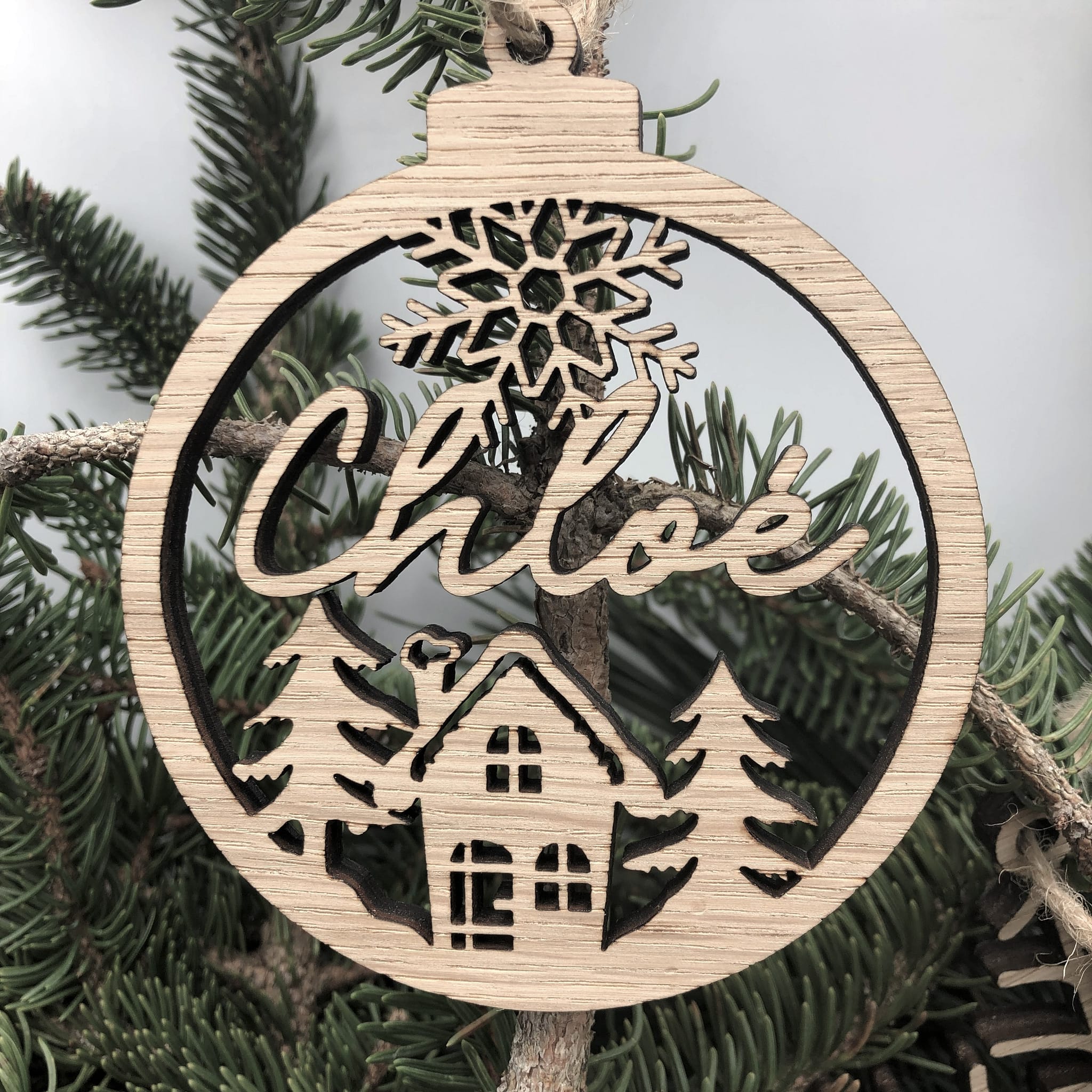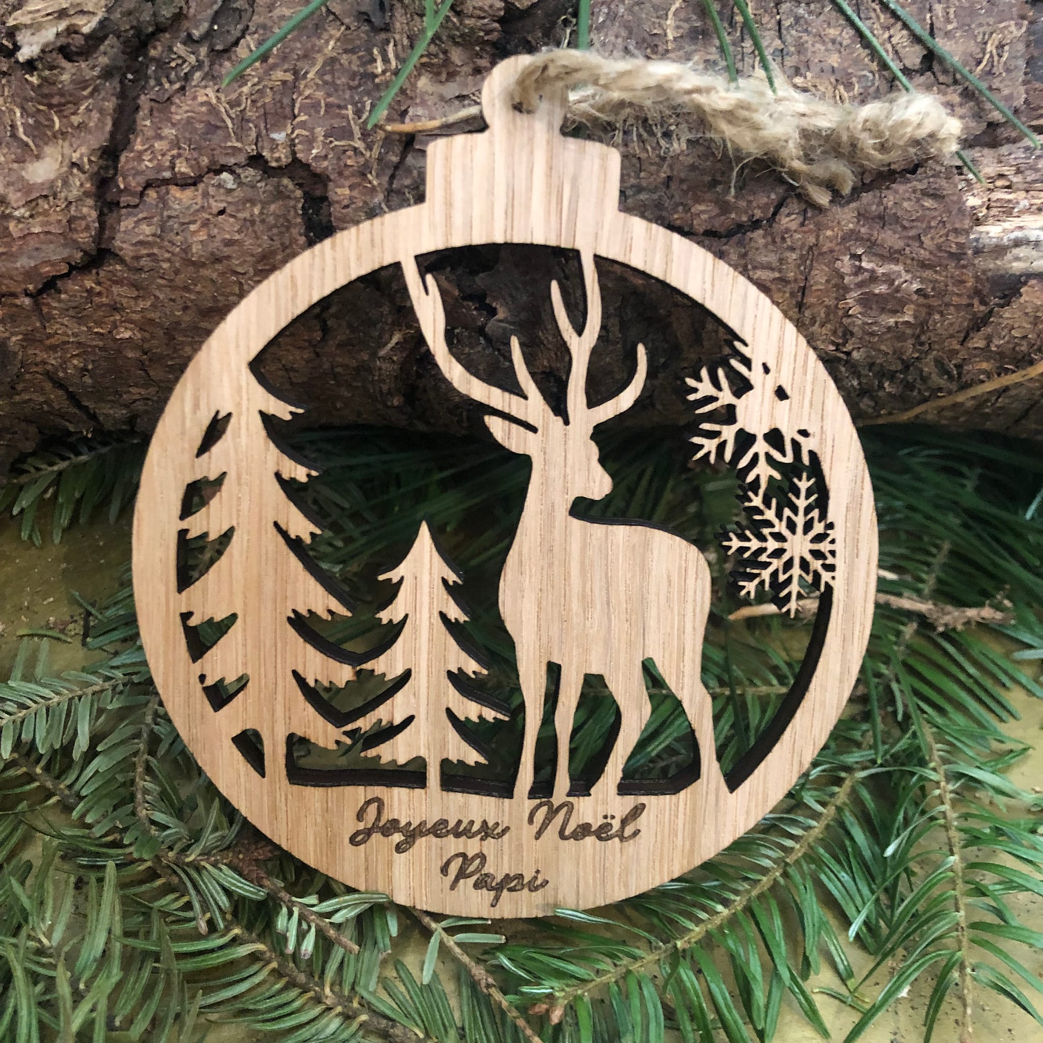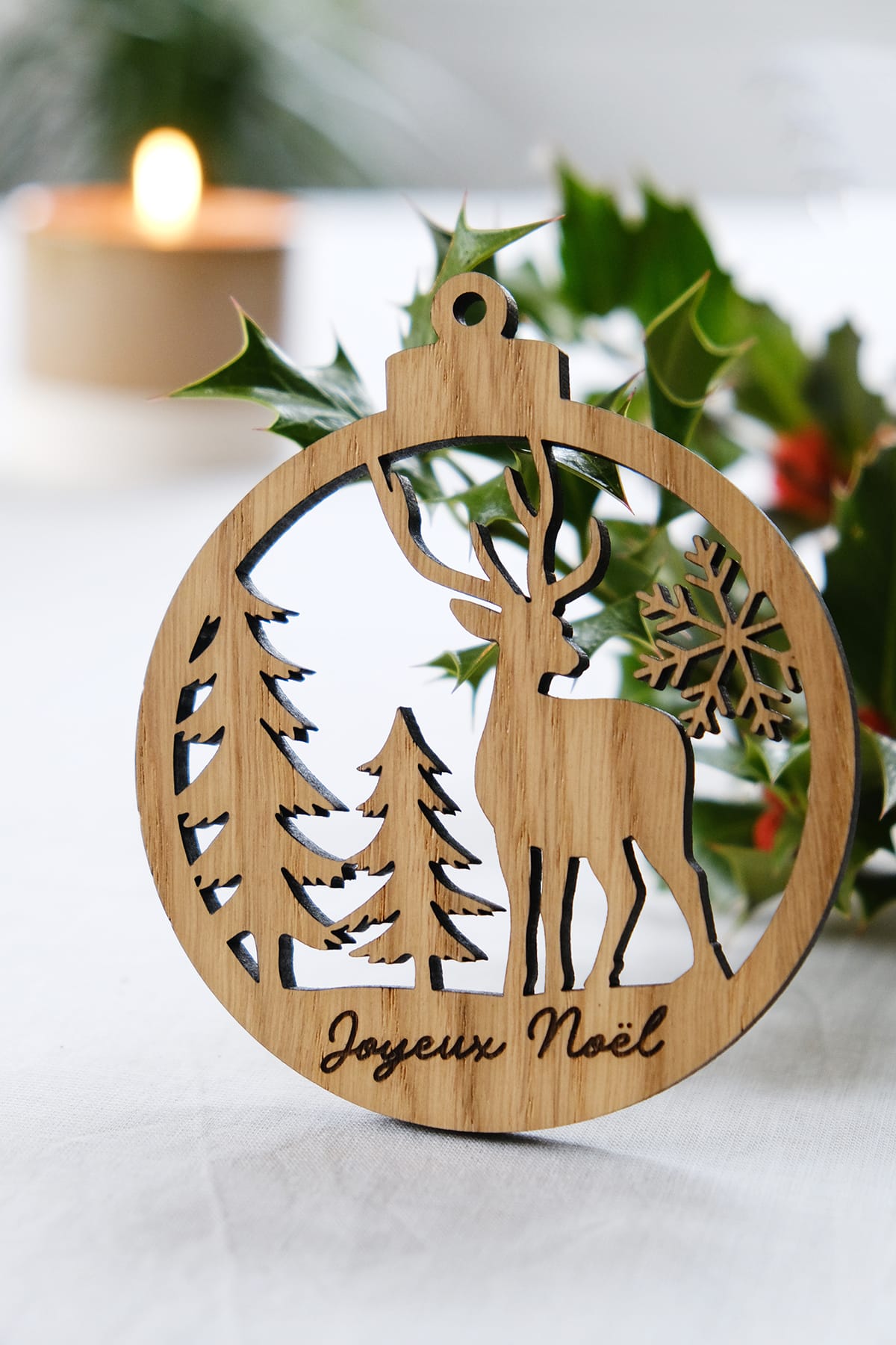 Boules de Noël personnalisées en bois pour un magnifique sapin qui fera le bonheur de toute la famille avec le prénom et 6 décors à choisir pour chaque boule.