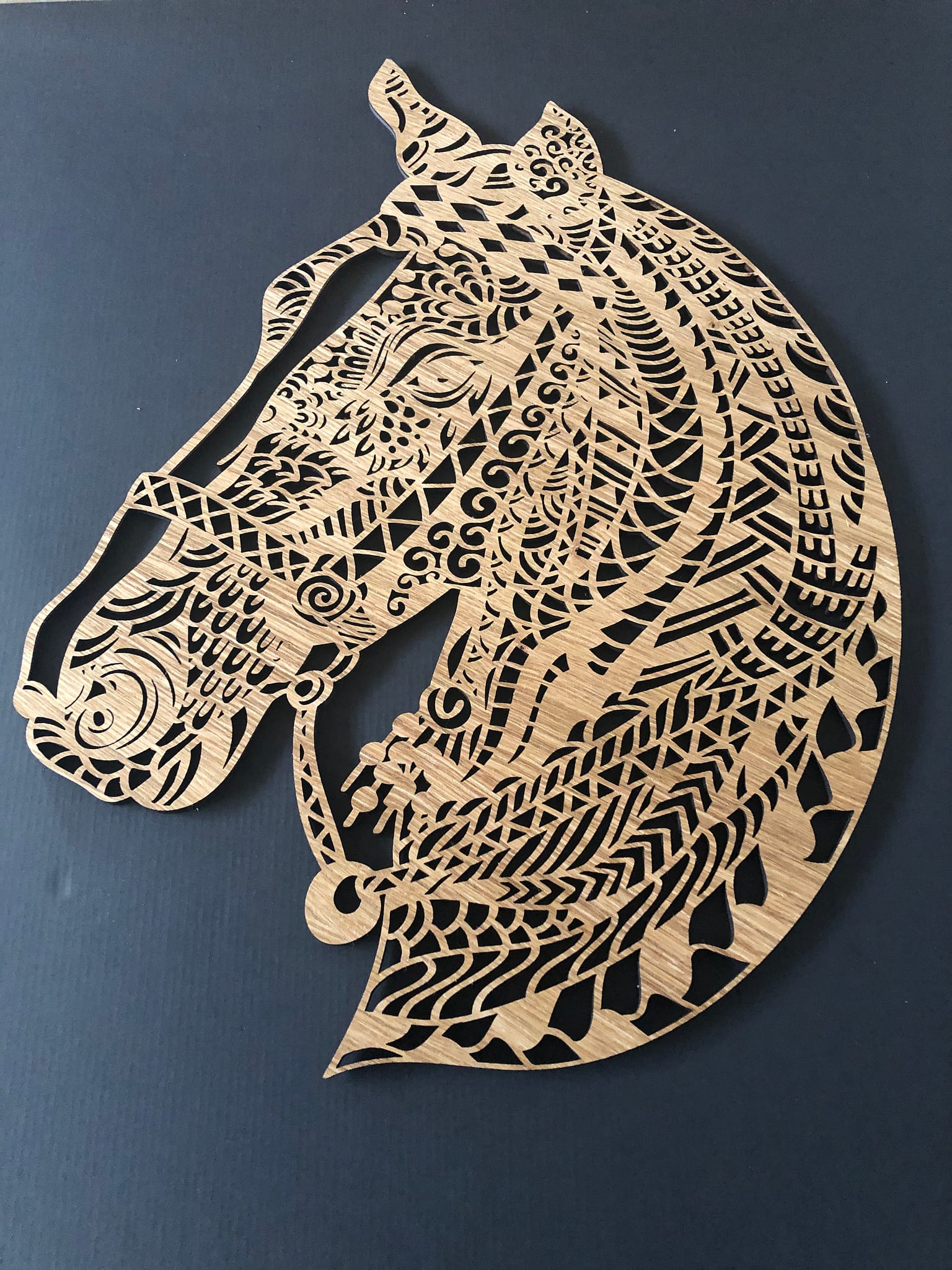 Pour les amoureux des chevaux, voici notre magnifique cheval en dรฉcoupe ultra fine style mandala, pour une dรฉco originale.