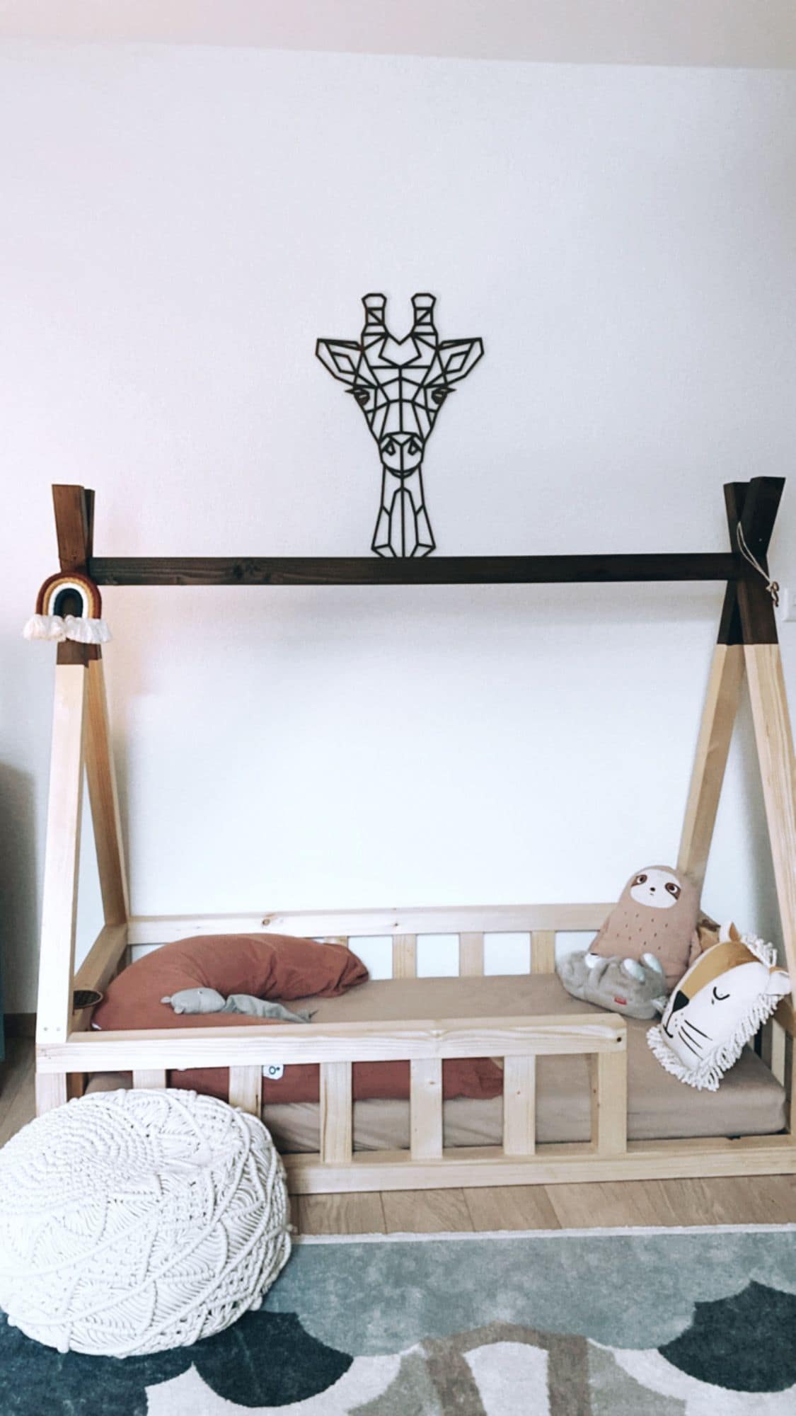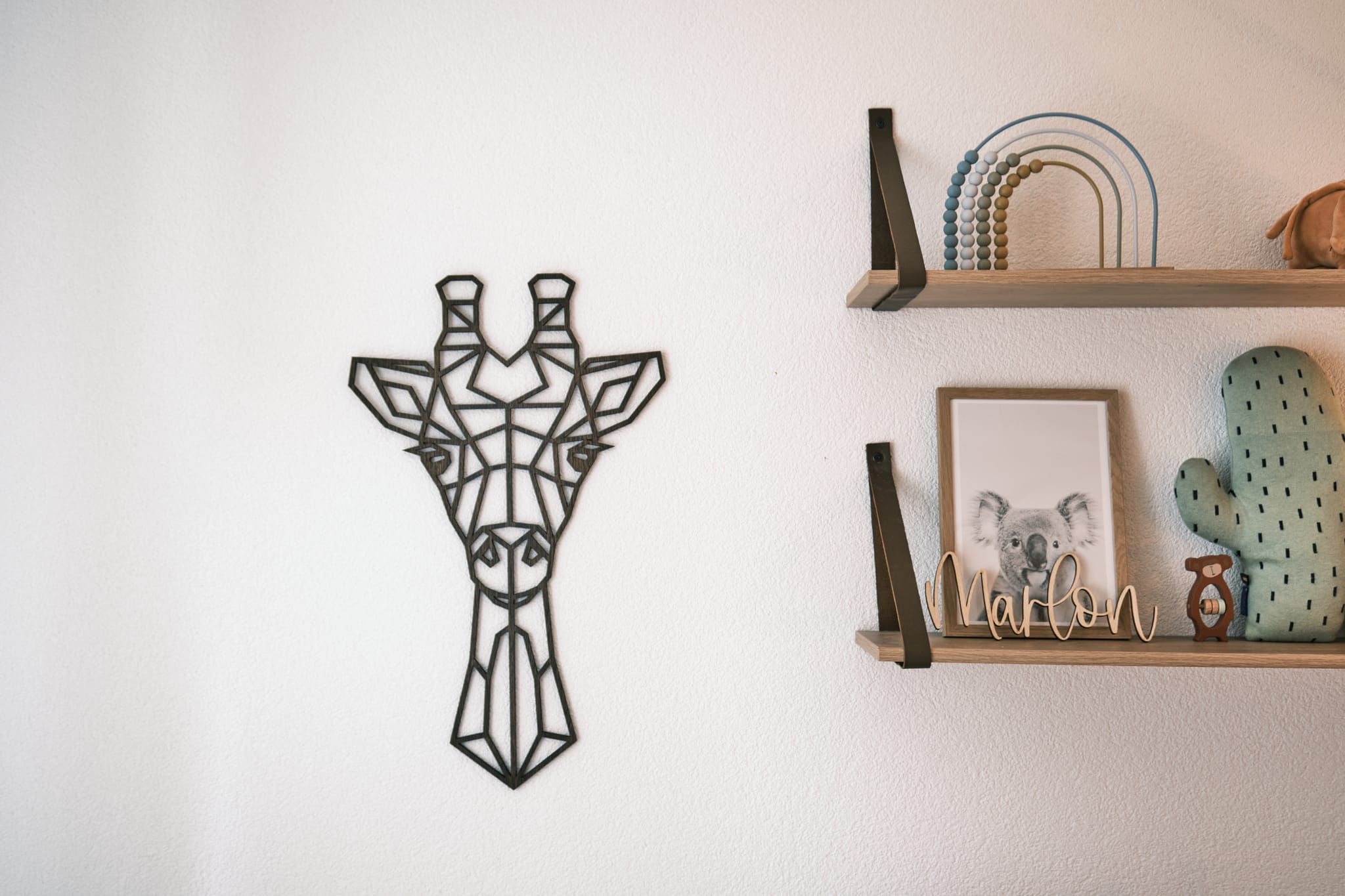 Une magnifique girafe en bois, découpe style origami pour la déco dans la chambre des enfants.