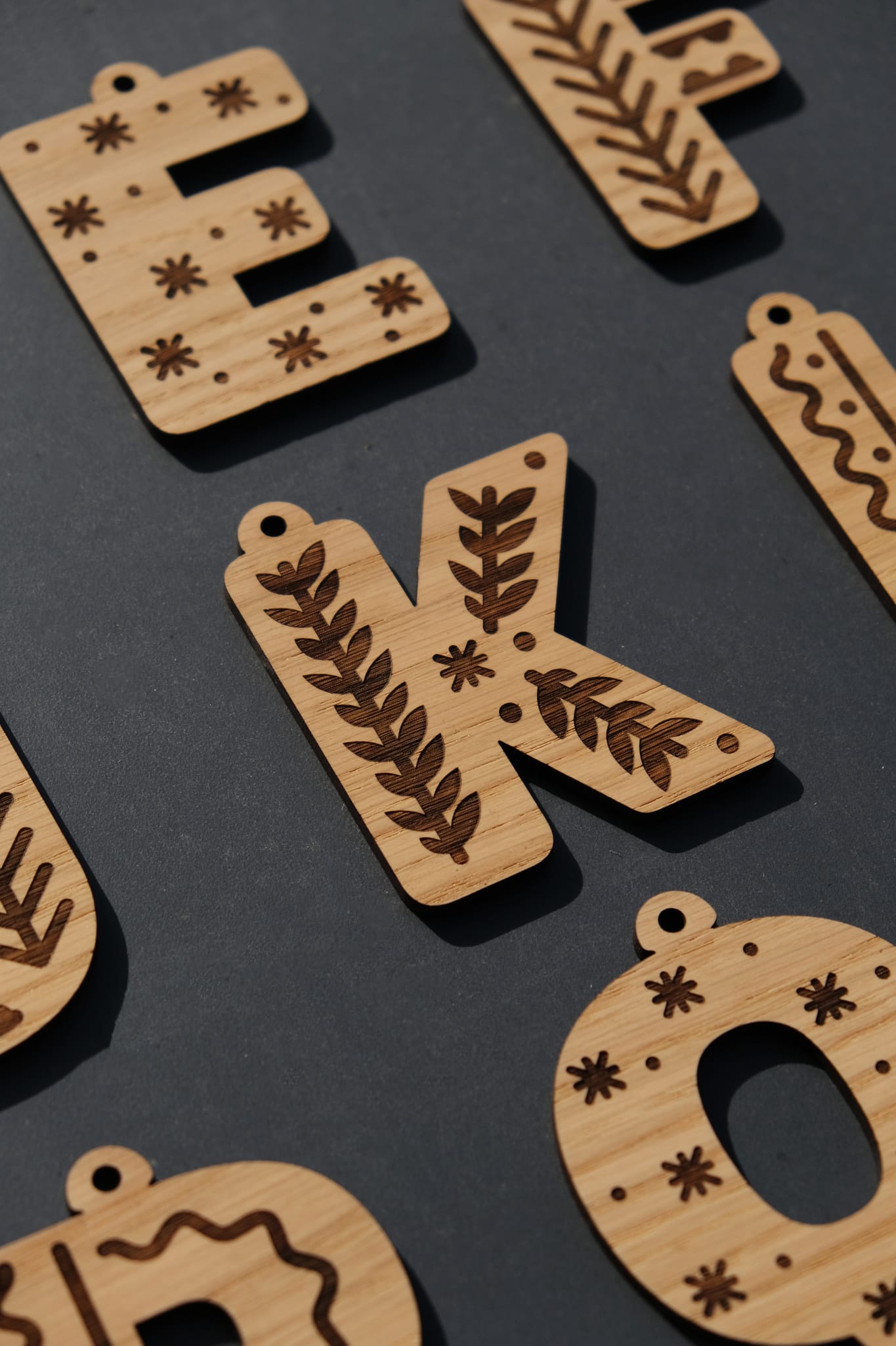 Chaque lettre est soigneusement conçue à partir de placage chêne régional et délicatement gravée au laser.