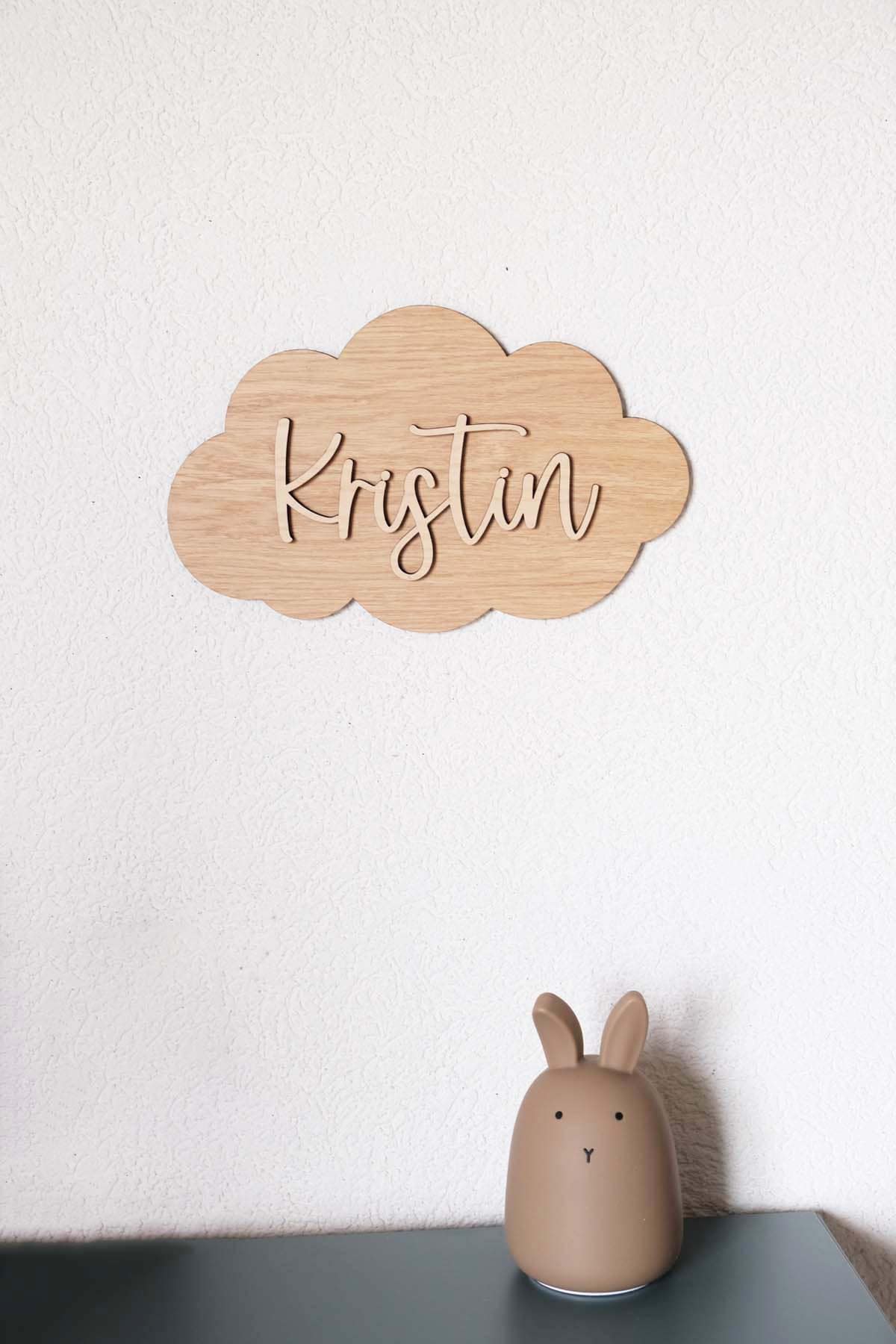 Un petit nuage personnalisé pour fixation sur la porte ou pour une déco naturelle dans la chambre à coucher.