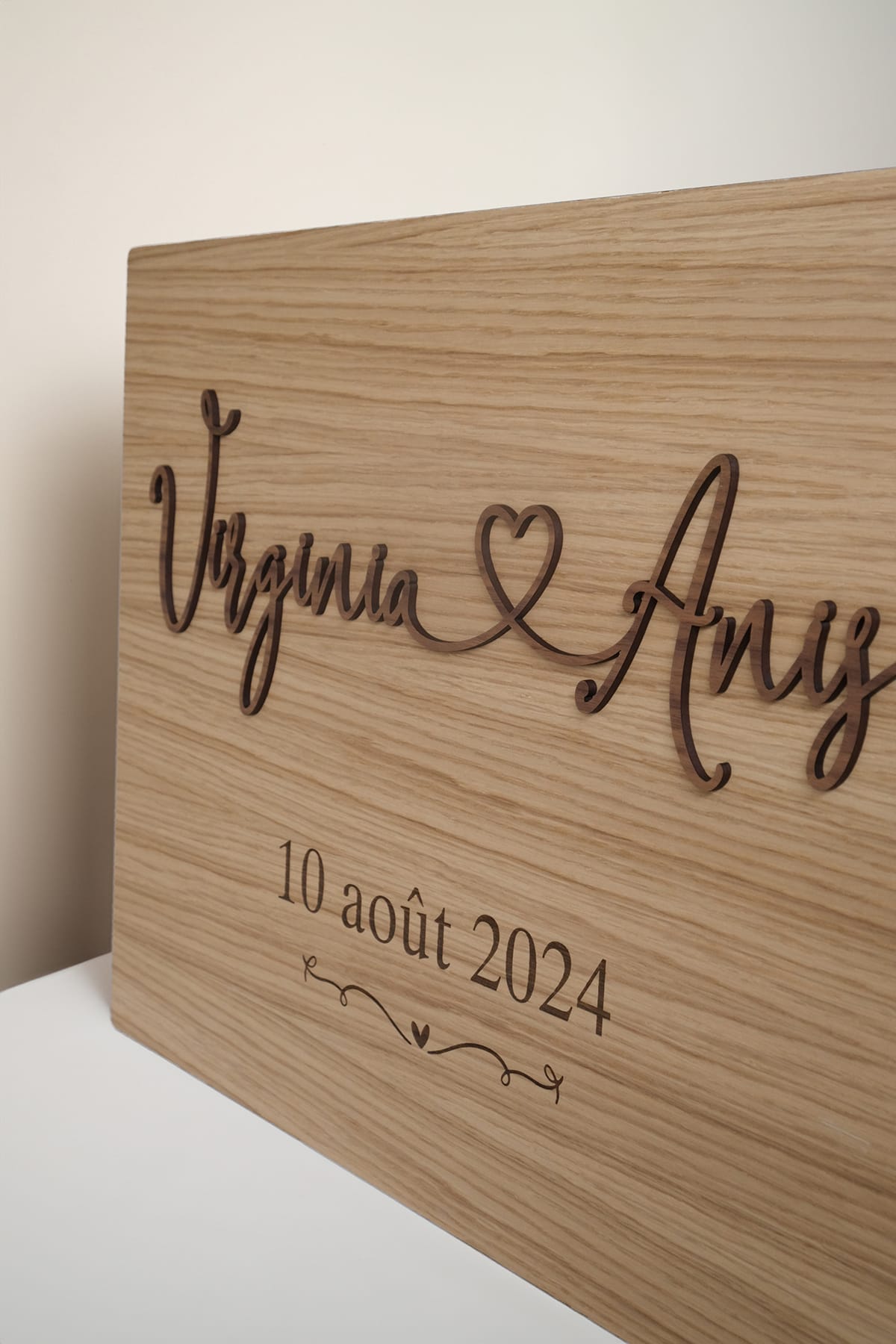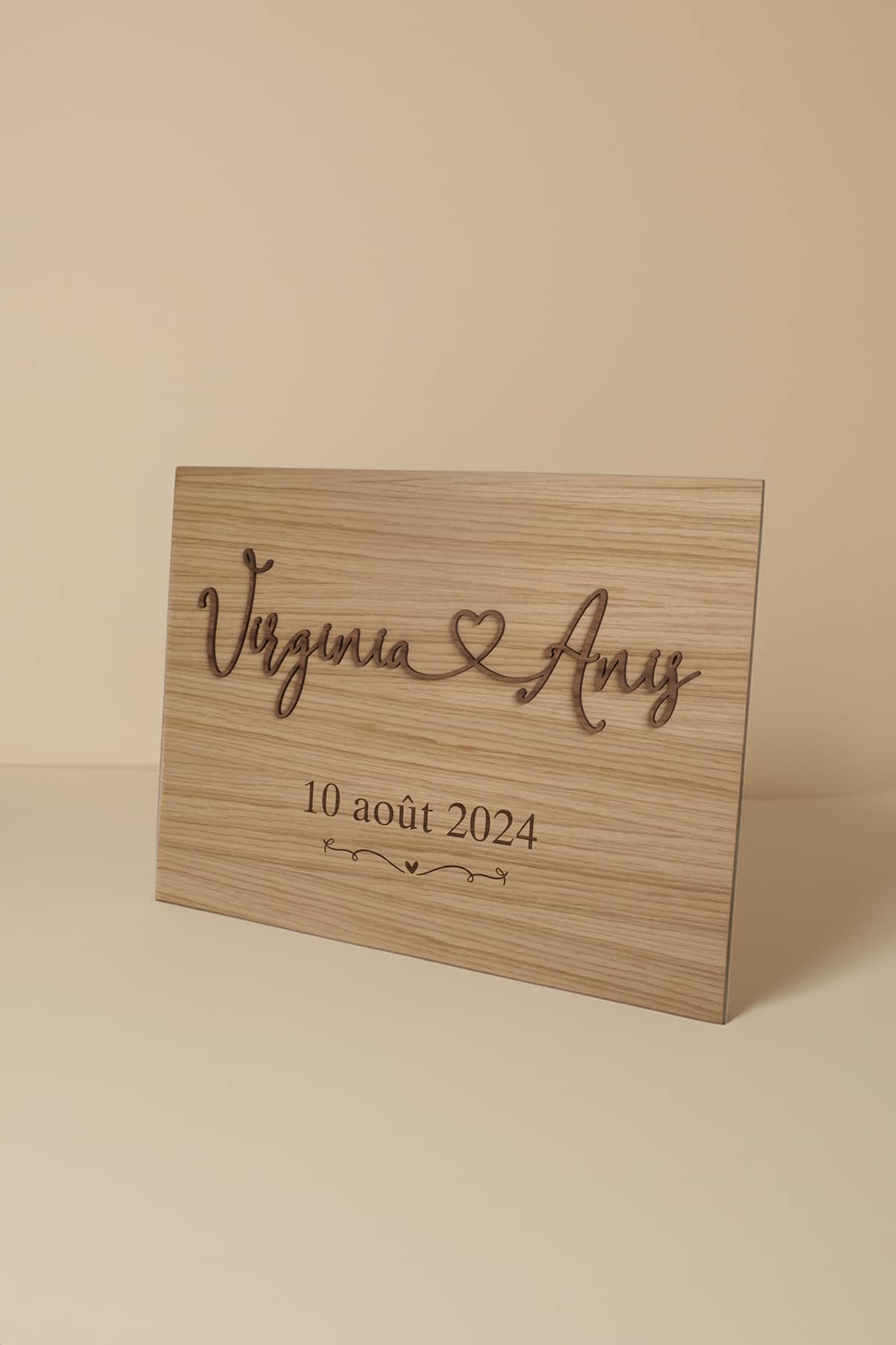 Les prรฉnoms sont dรฉcoupรฉs sur du noyer (foncรฉ) pour faire le contraste.