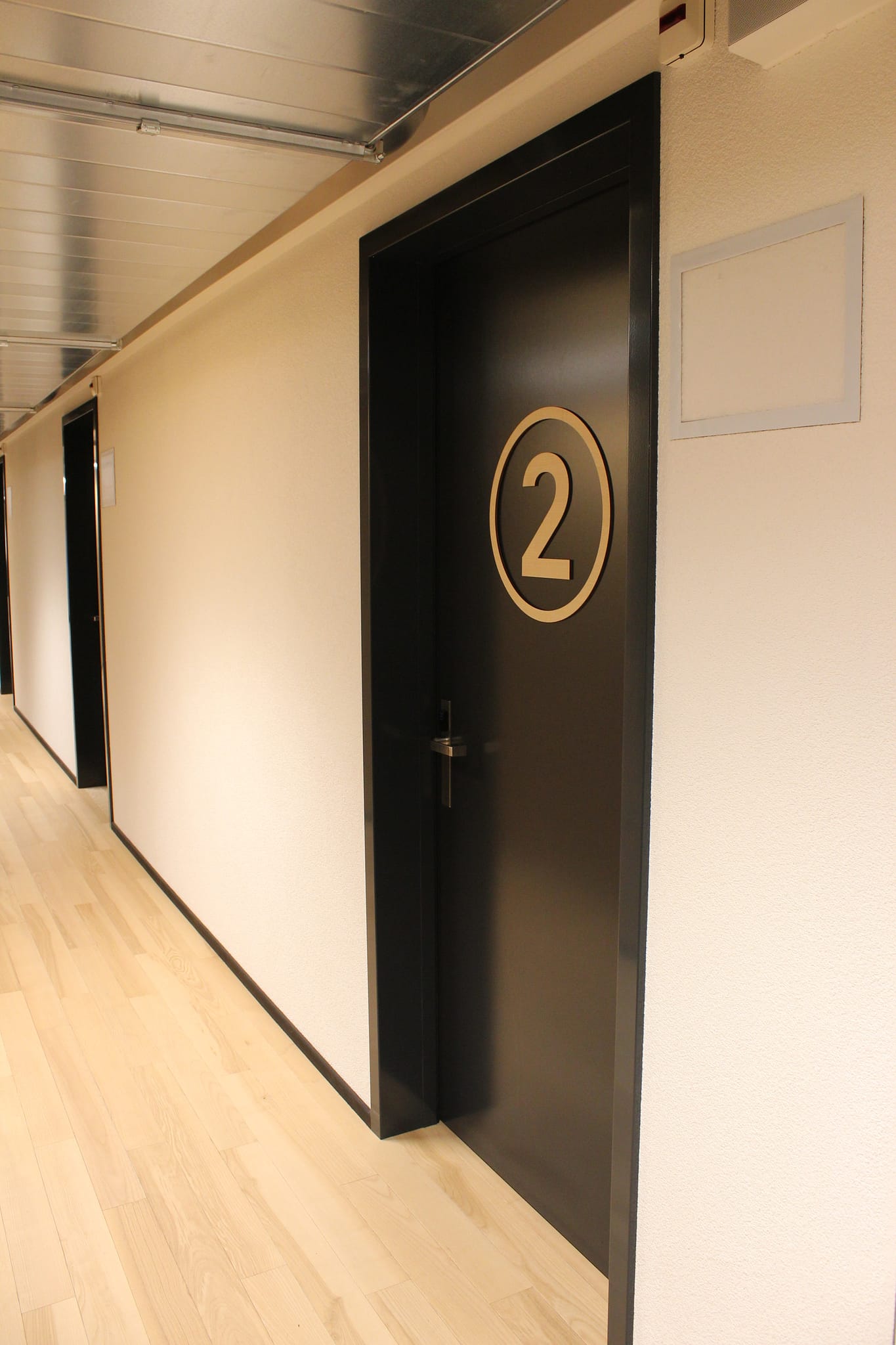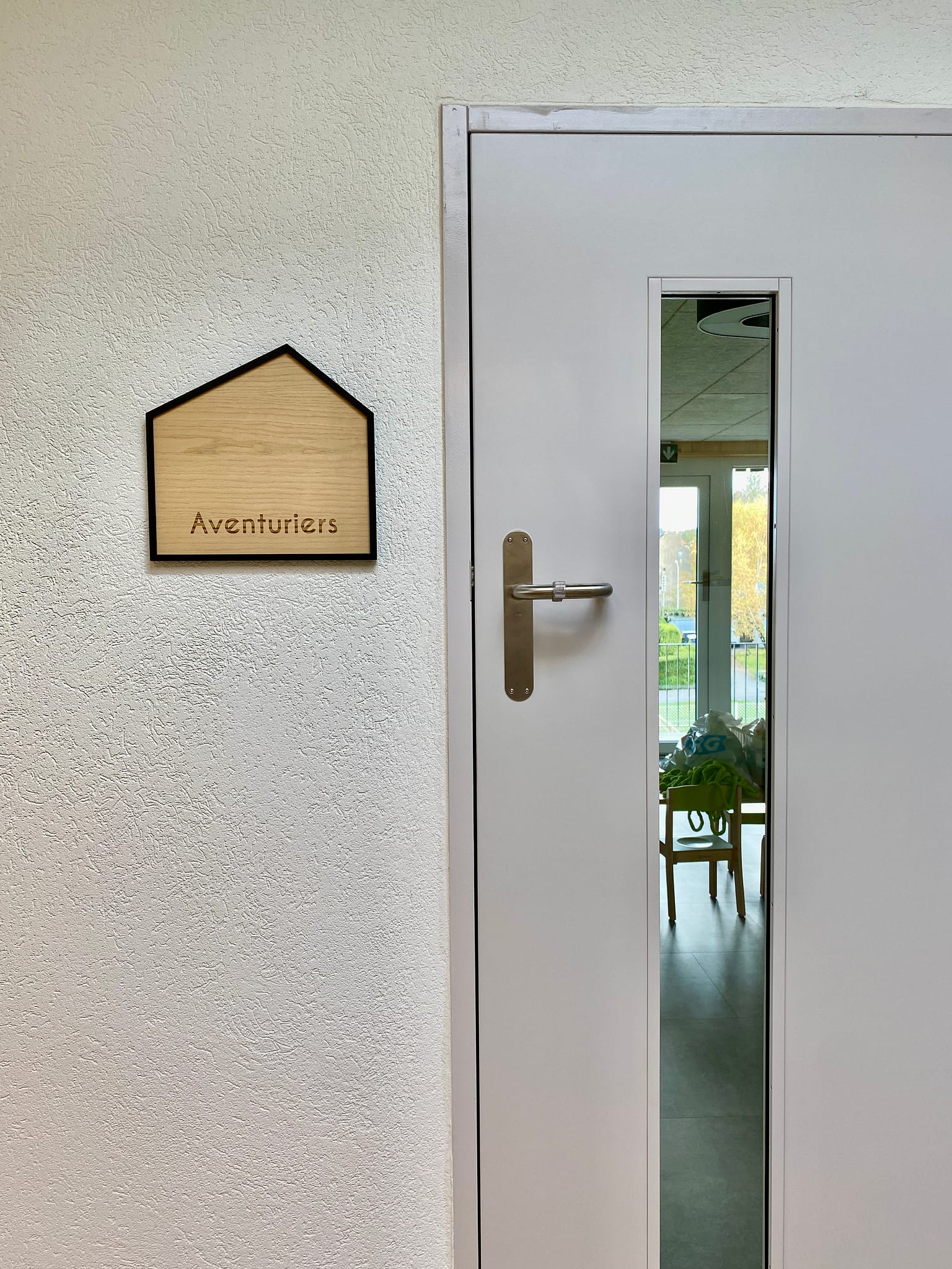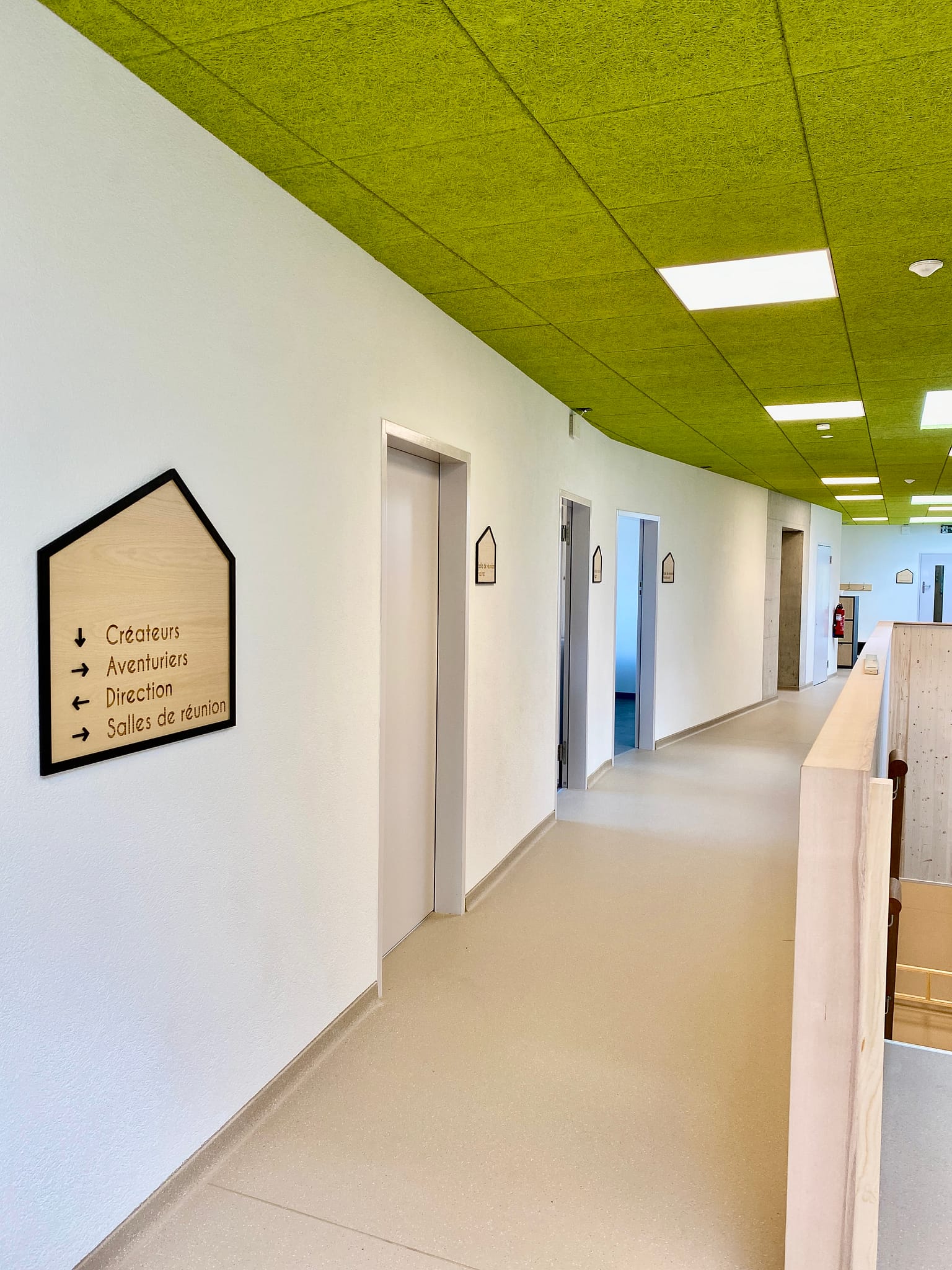 Nous avons découpé toute la signalétique des portes de la nouvelle Arena sur du frêne, ainsi que le marquage sur aluminium pour les escaliers.