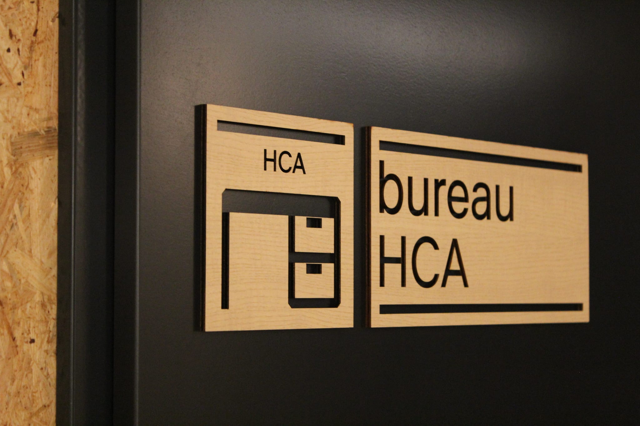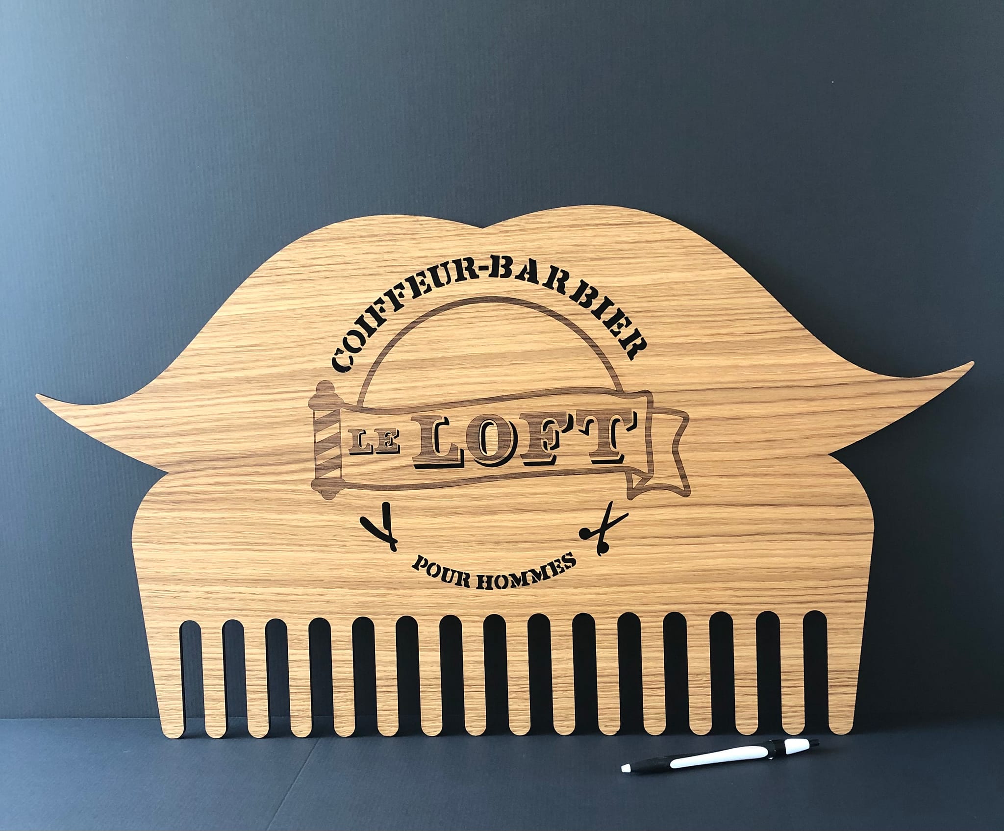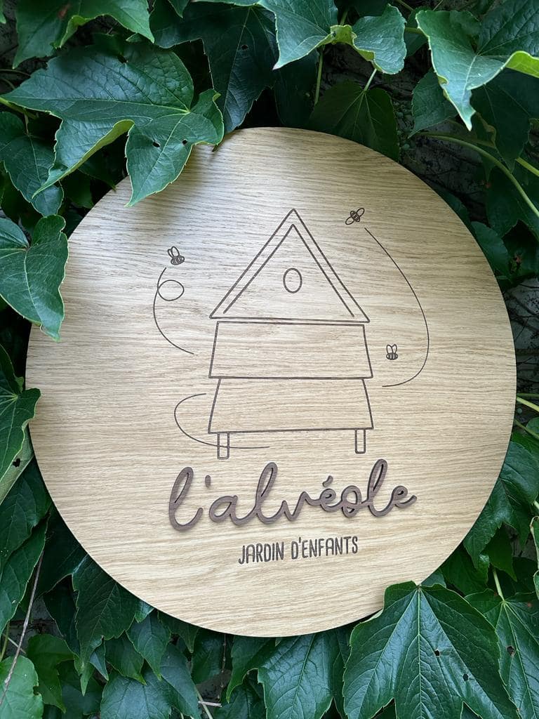 Une magnifique signalétique 100% personnalisée, originale et éco-responsable. Découpe et gravure sur frêne et mdf noir.