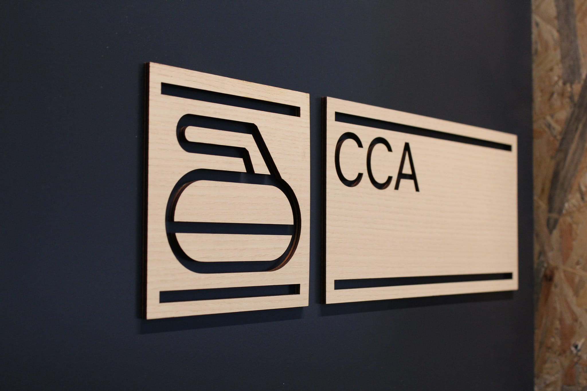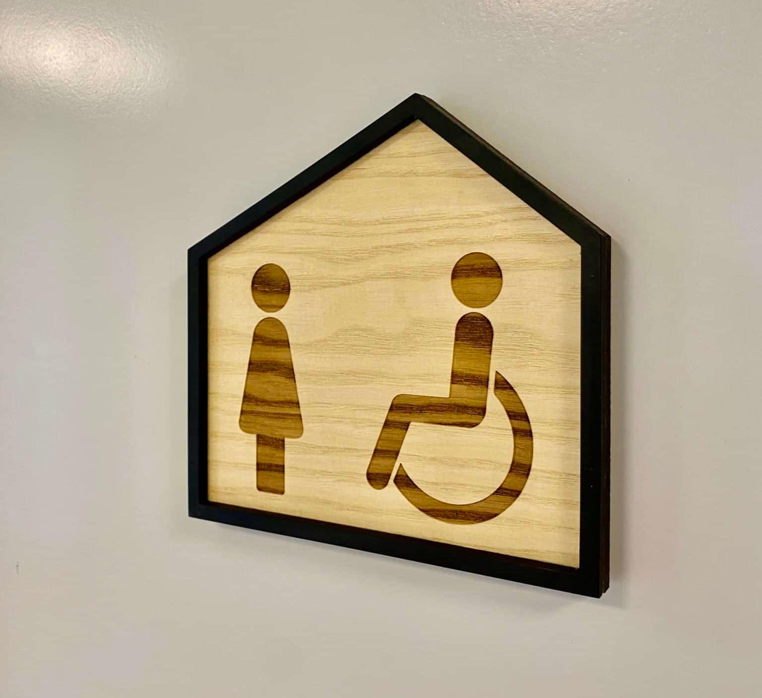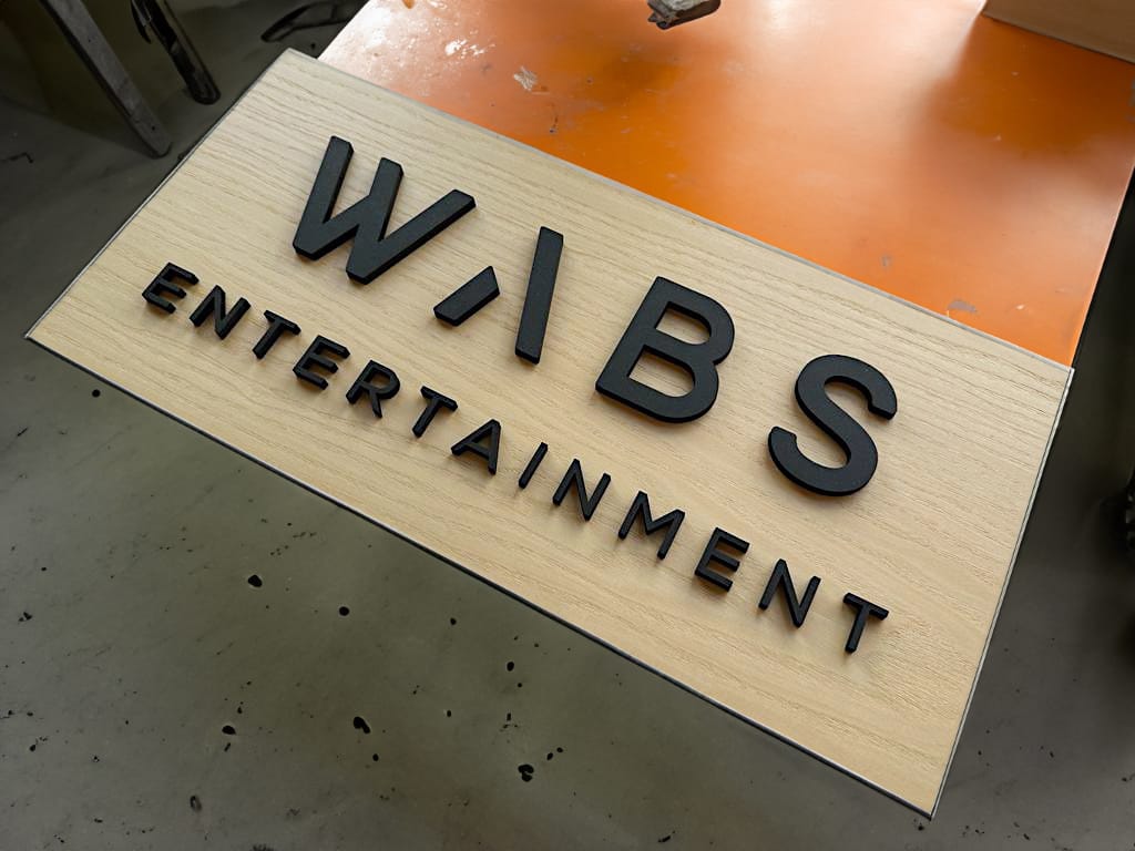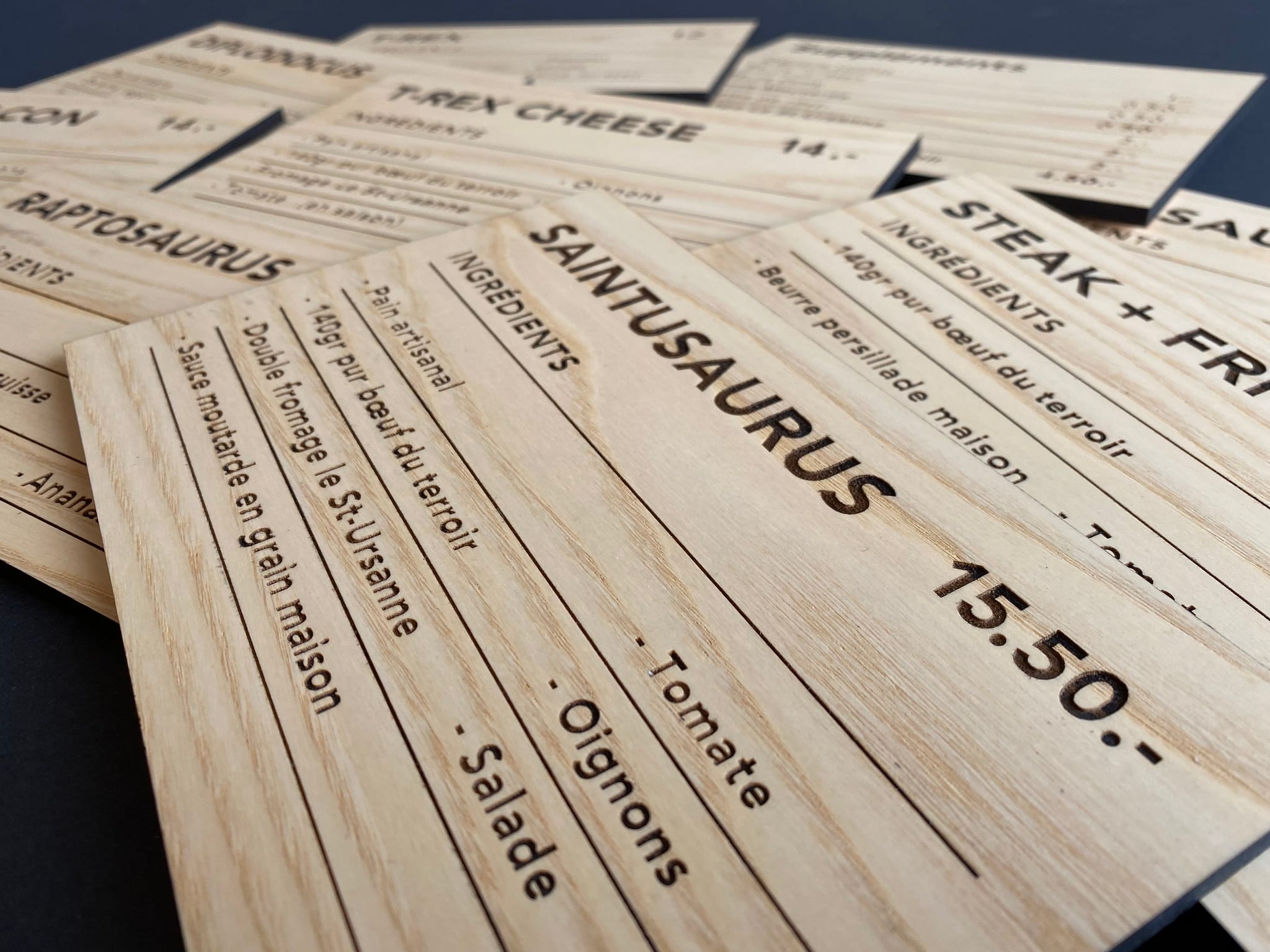 Une magnifique signalétique 100% personnalisée, originale et éco-responsable. Découpe et gravure sur frêne et mdf noir.