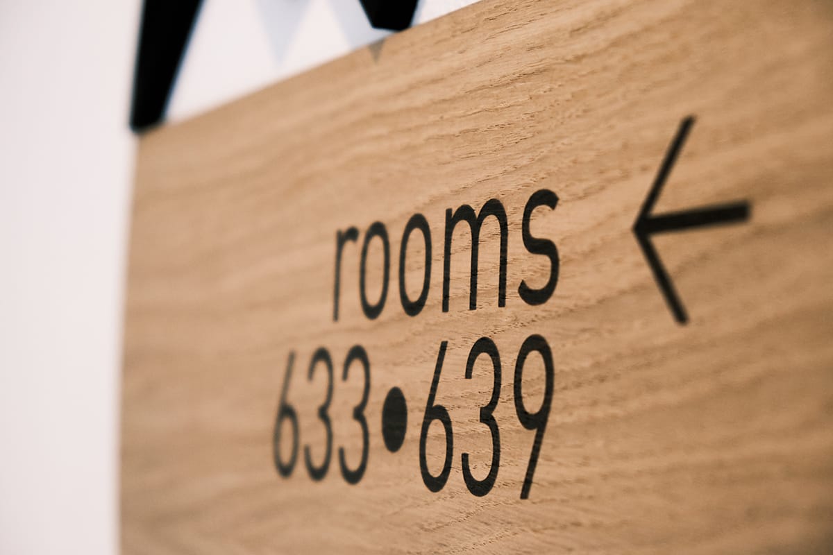 Une magnifique signalétique originale et eco-responsable. Découpe et gravure sur chêne et mdf noir pour l'Hôtel Victoria